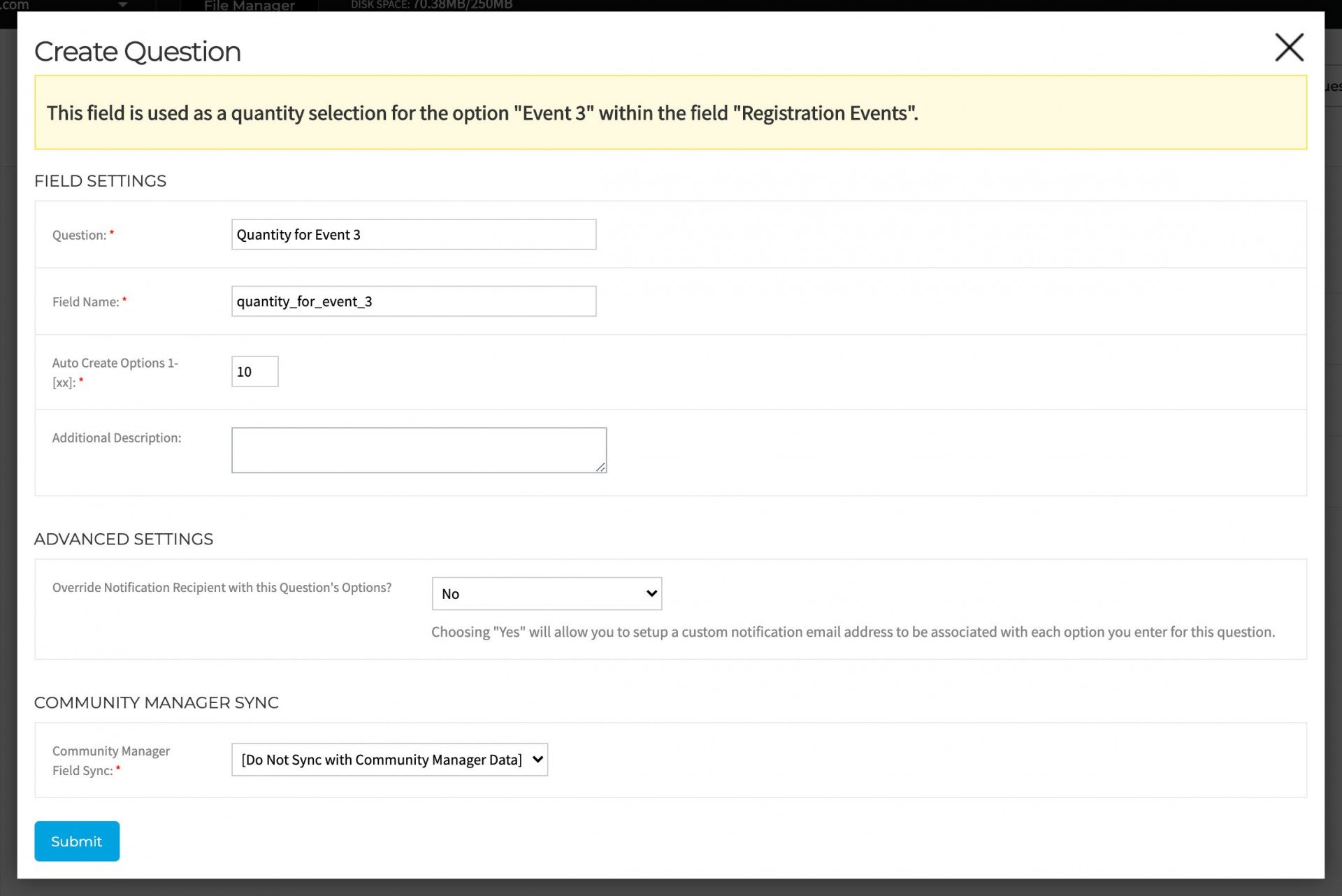 Previously, form submissions could only be limited within the Registration Settings section of the Form Settings on any Form Builder page, which made it difficult for multiple events to be individually limited within a single form.