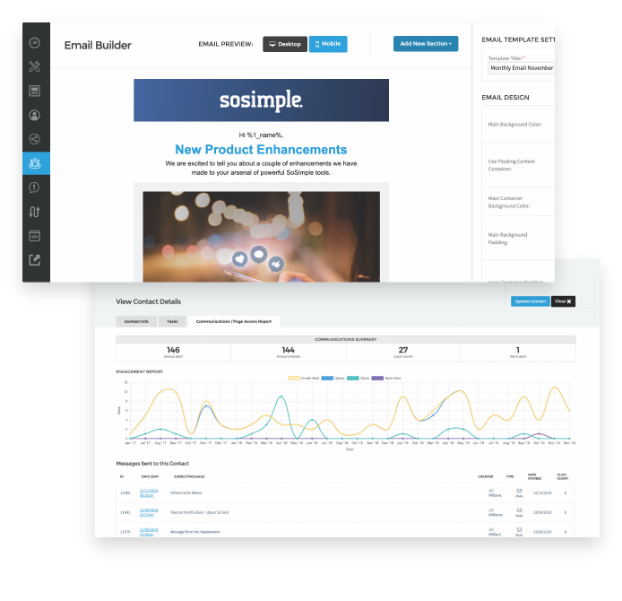 Increase traffic to your school’s website. Fuel your next enrollment campaign. Boost your advancement efforts. With SoSimple’s robust built-in marketing tools, you can create visually impactful landing pages, custom lead capture forms, auto-responders, and automated email campaigns.